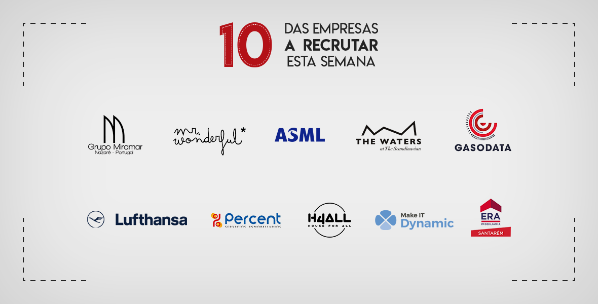 São estas as 10 empresas a recrutar esta semana em Portugal, que destacámos para si. Não perca tempo e envie já a sua candidatura.
