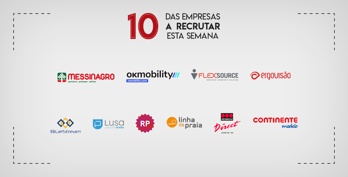 Há 10 novas empresas a recrutar esta semana e pode candidatar-se já às ofertas que elas têm em aberto.