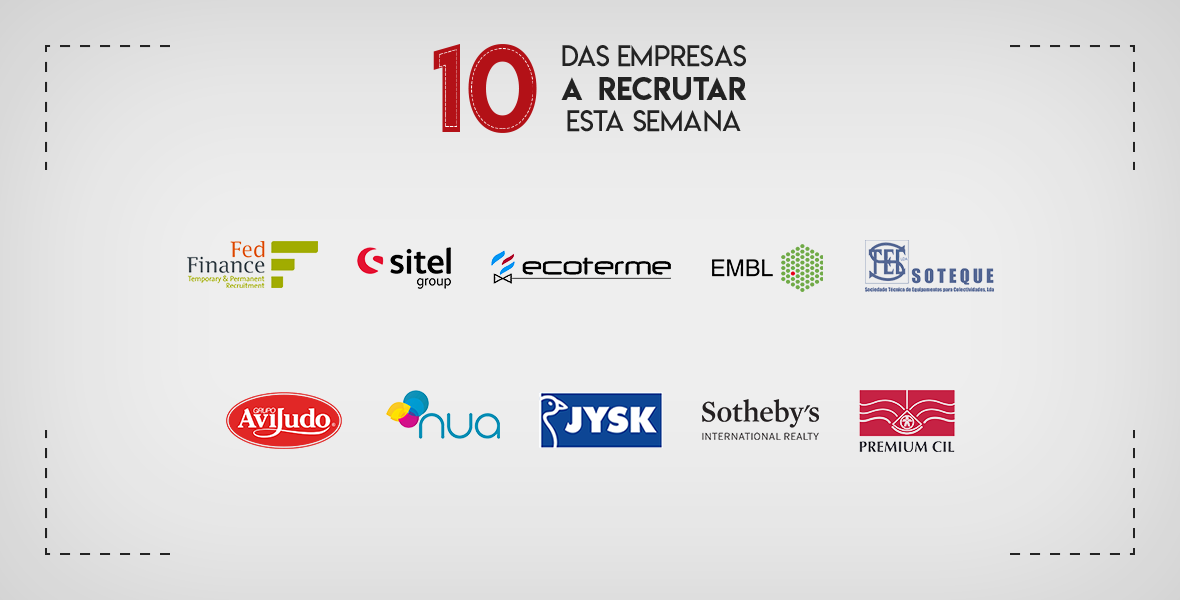Já viu as empresas a recrutar esta semana em Portugal? São dez e têm centenas de ofertas disponÃveis.