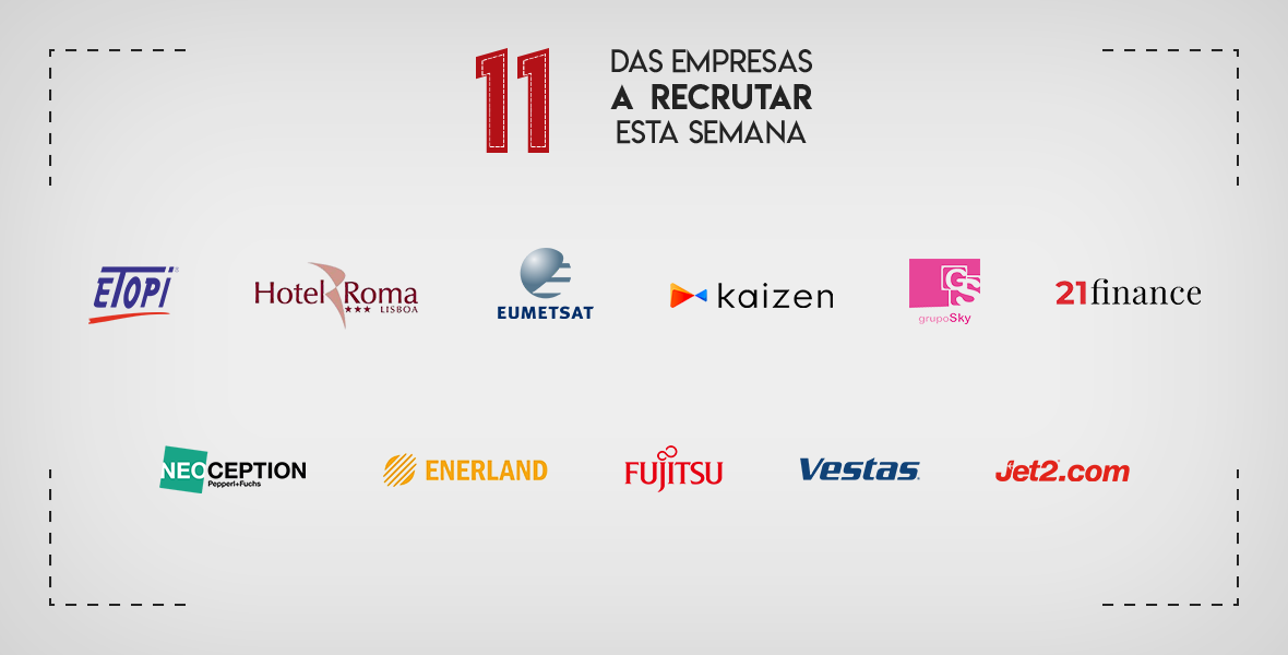 Dia 11 e trazemos-lhe o mesmo número de empresas a recrutar esta semana, vai deixar escapar estas novas oportunidades? Conheça-as e candidate-se já.