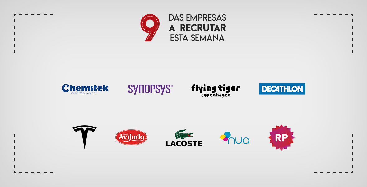 Aviludo, Decathlon, Lacoste e Tesla são algumas das empresas a recrutar.