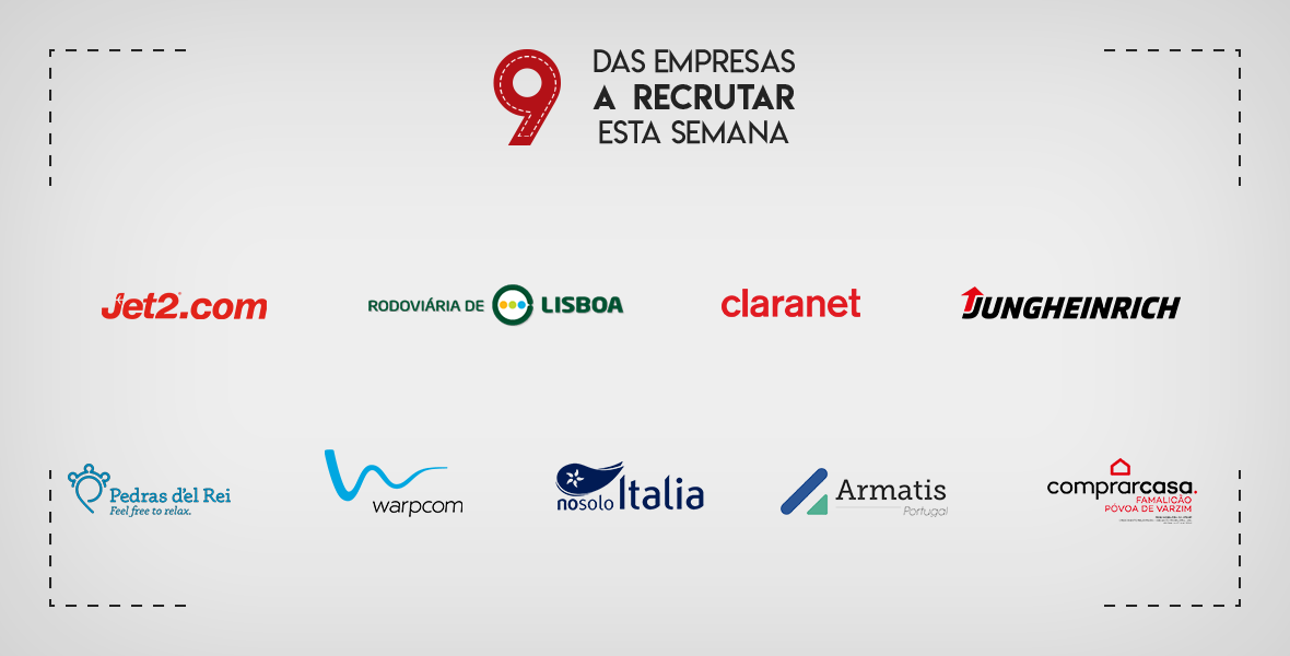 Está sem trabalho ou pretende agarrar uma nova oportunidade? Temos 9 novas empresas a recrutar esta semana em Portugal, só tem de enviar a sua candidatura.