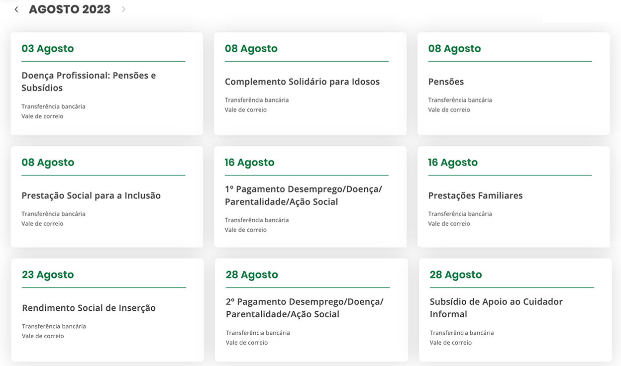 As datas de pagamentos da Segurança Social de Agosto já estão disponíveis. Se recebe subsídios ou pensões, veja aqui quando pode contar com essa ajuda.