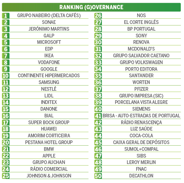 Conheça o ranking de reputação corporativa em Portugal. São 100 empresas que melhor cumprem os critérios ambientais, interno / social e ético / governança (ESG).