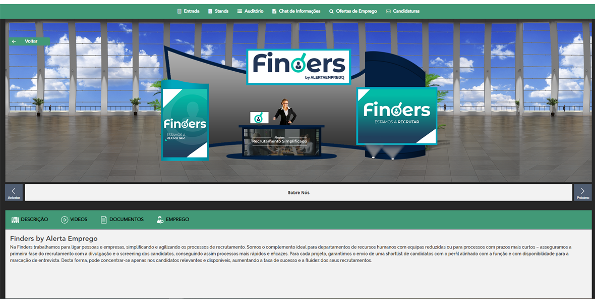 Ao entrares no Stand de cada empresa, vais ter acesso às informações disponibilizadas pelas mesmas.