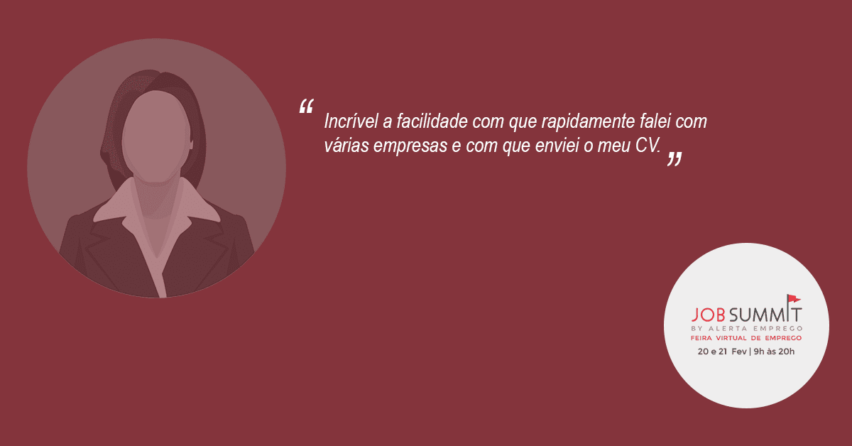 “O Job Summit é uma ótima oportunidade para reconquistarmos a autoconfiança e procurarmos melhorar as nossas capacidades. Fui contactada por empresas, já estive em entrevistas e estou satisfeita com o feedback.”