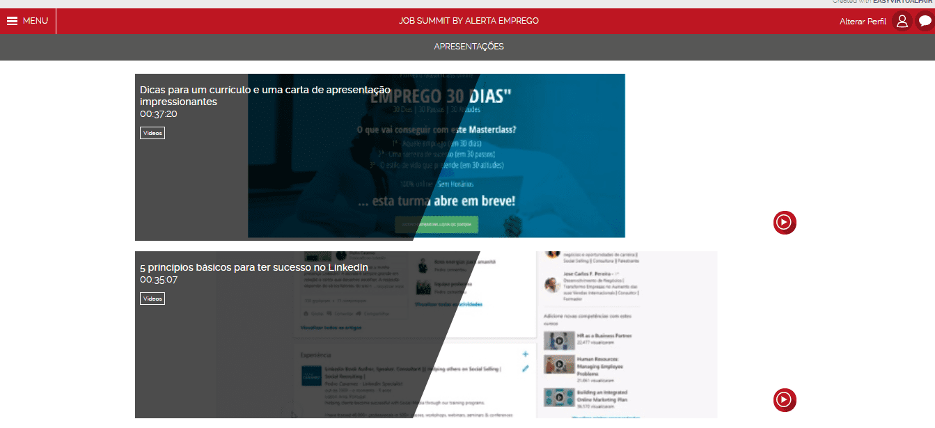 Para além das empresas e das ofertas de emprego terá também acesso a apresentações relevantes para quem procura emprego: