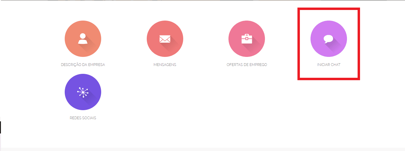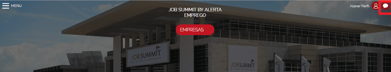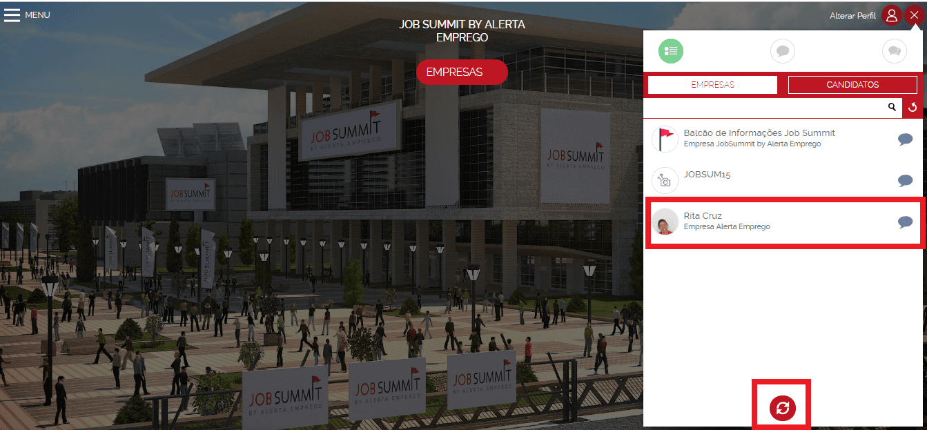 Ao clicar no símbolo do chat abre uma janela e deverá clicar em empresas para verificar que empresas/recrutadores estão online nesse momento:
