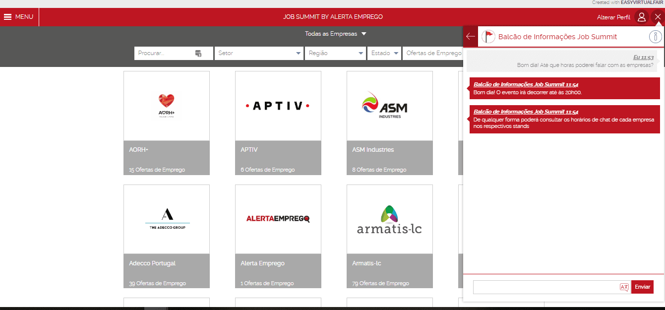 Durante o evento poderá conhecer melhor as empresas, candidatar-se às ofertas de emprego e conversas em chats públicos e privados com os recrutadores das organizações participantes.