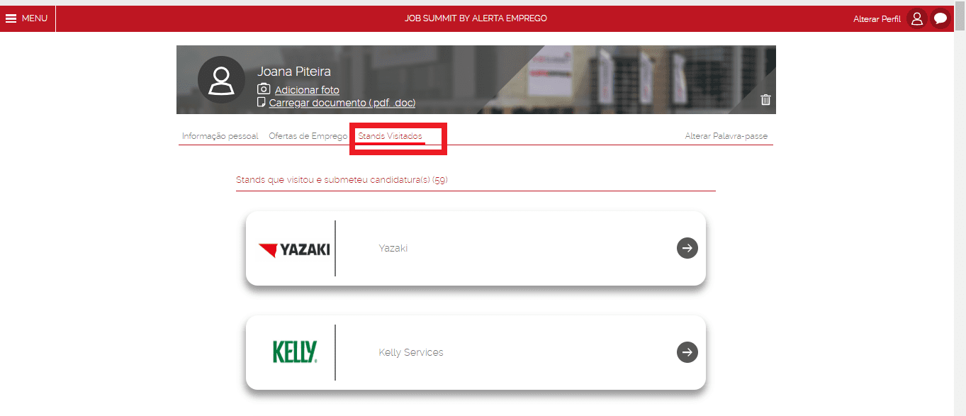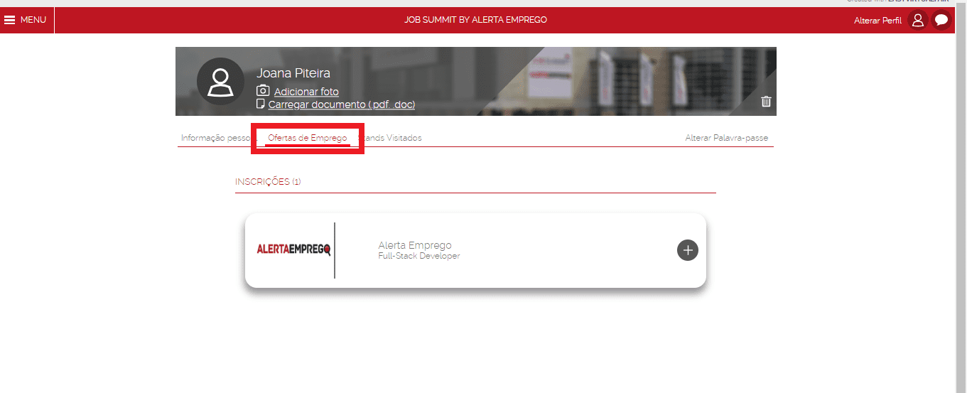 Para além disso pode consultar as ofertas às quais já se candidatou: