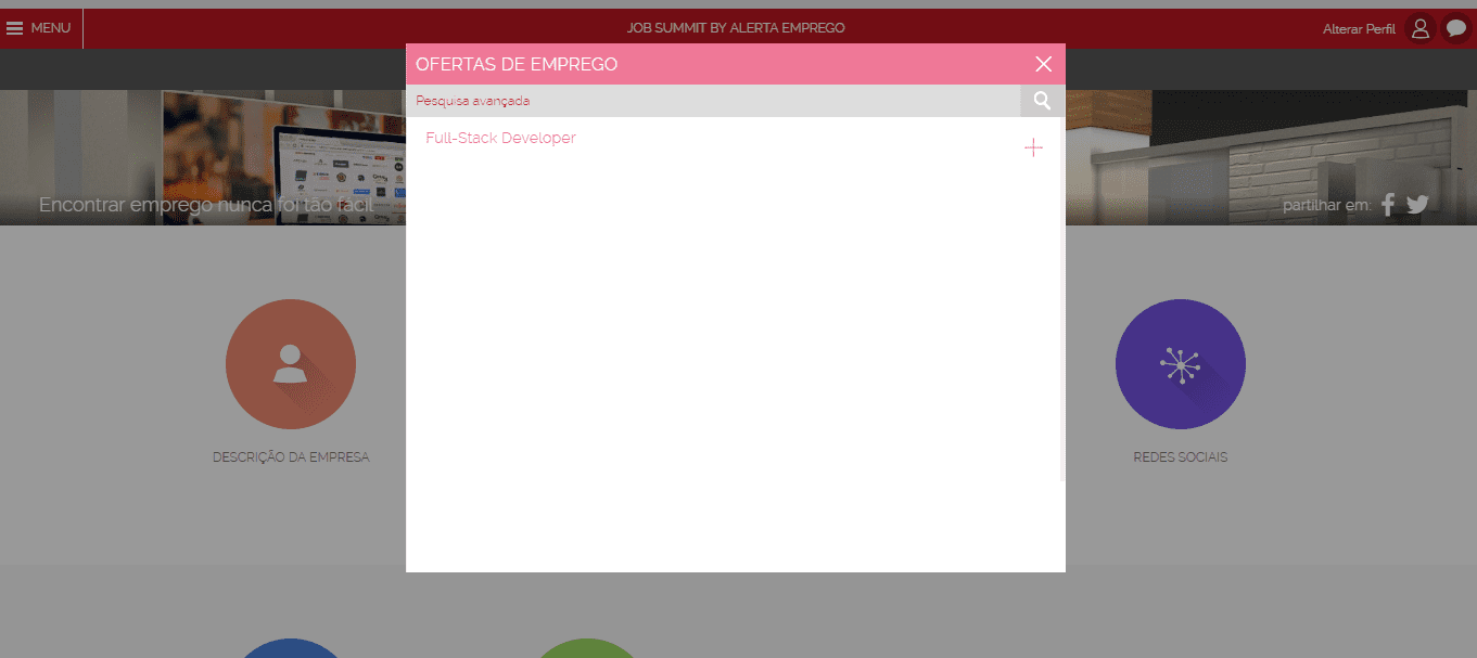 Outra forma será novamente através do menu e clicando em “Ofertas de emprego”.