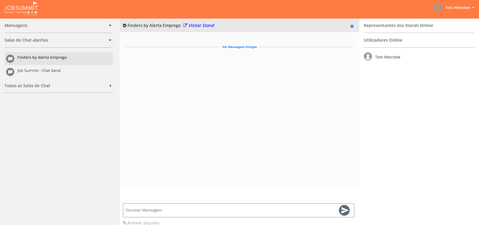 No Chat tem o Job Summit – Chat Geral, que funciona como um chat público, onde todas as empresas, utilizadores e organização presentes no evento veem o que escrever. Servindo assim mais como um bom local para esclarecer dúvidas gerais.