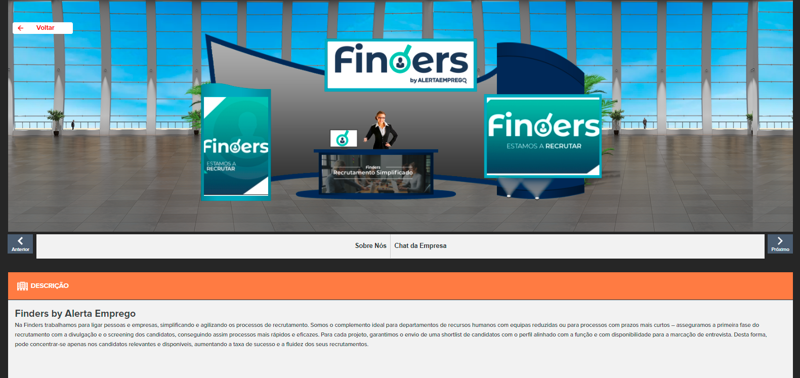 Ao entrar no Stand de cada empresa vai ter acesso às informações disponibilizadas pelas mesmas.