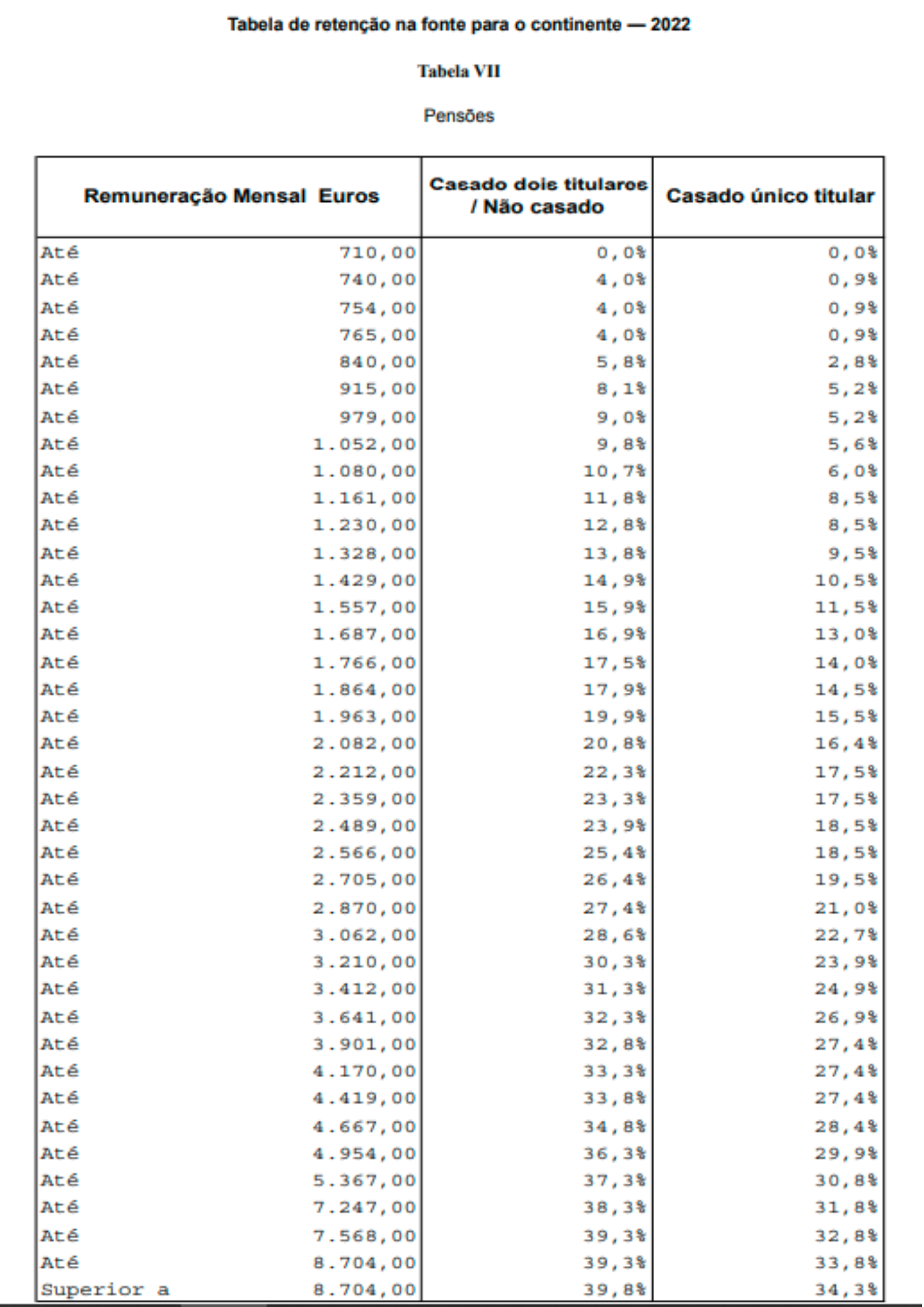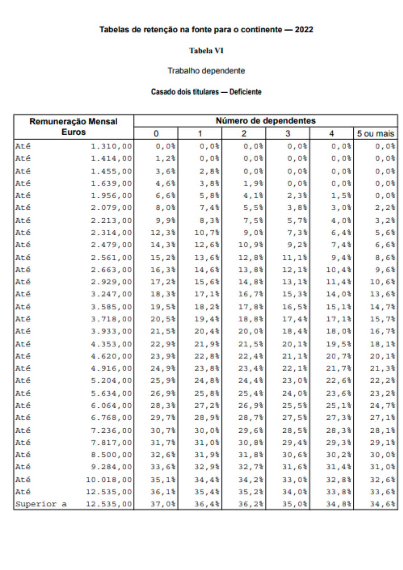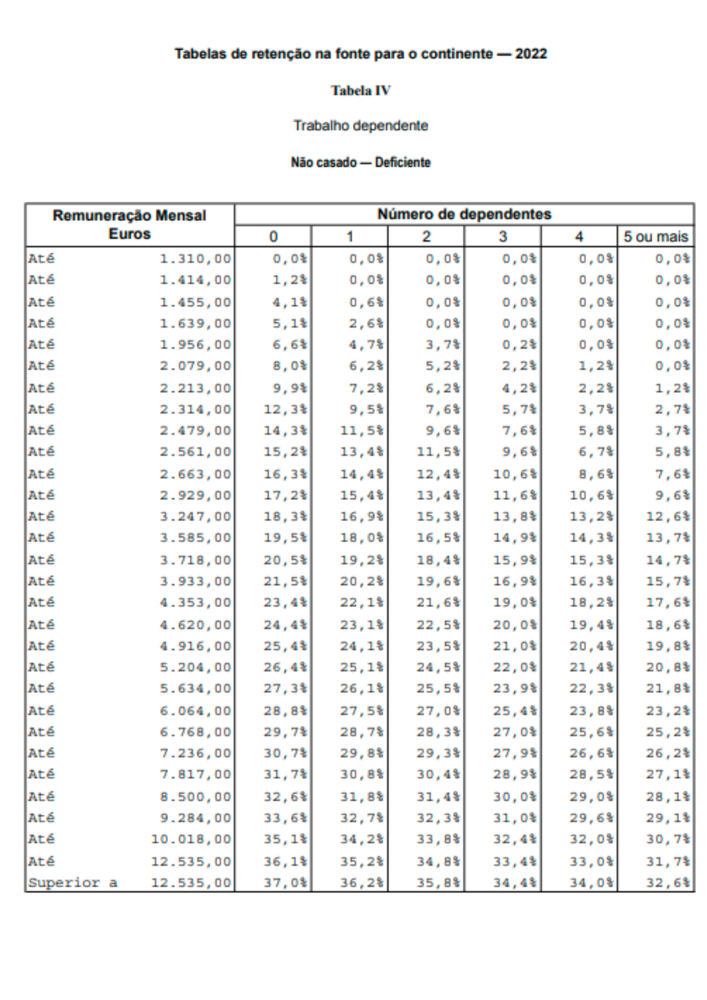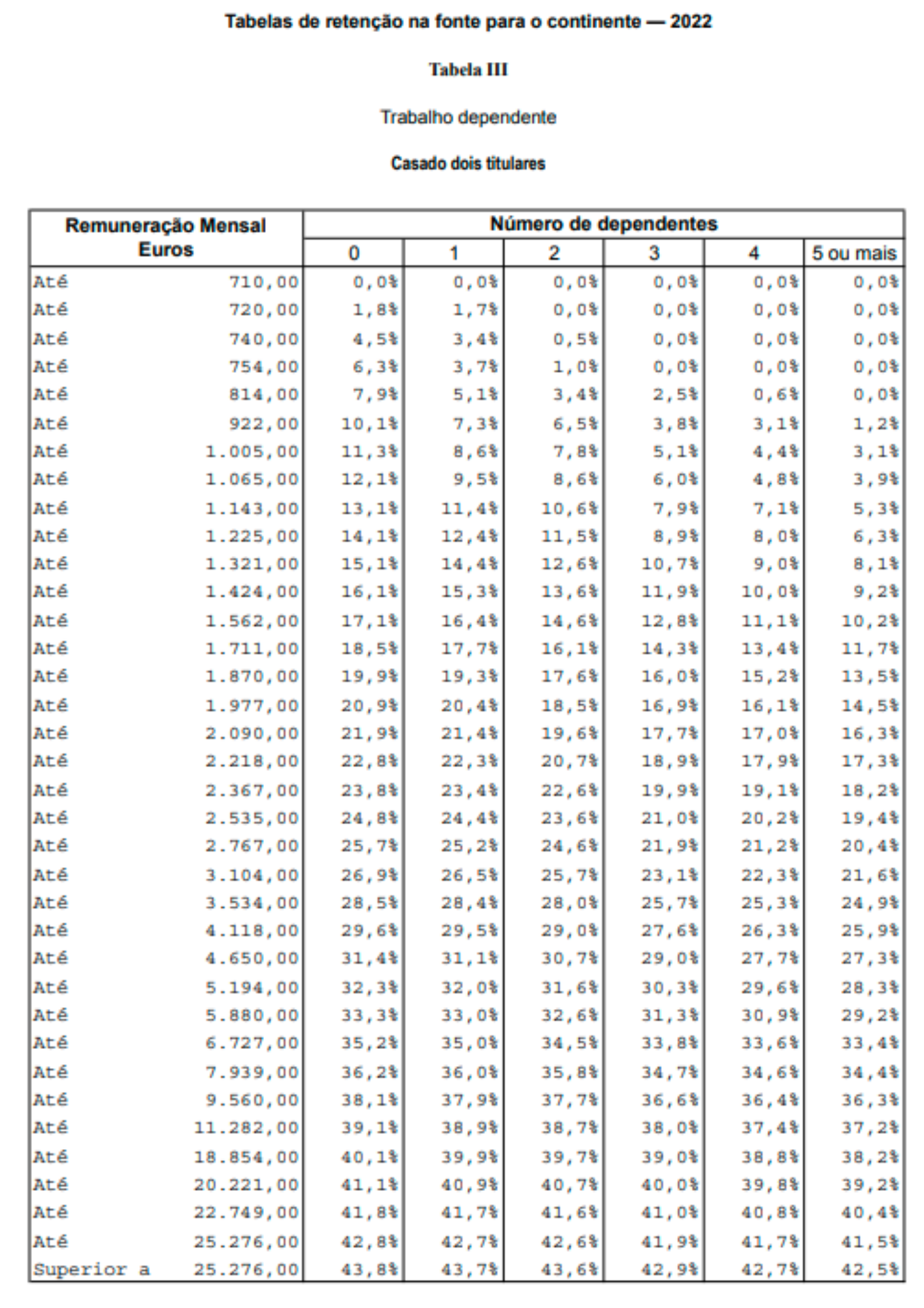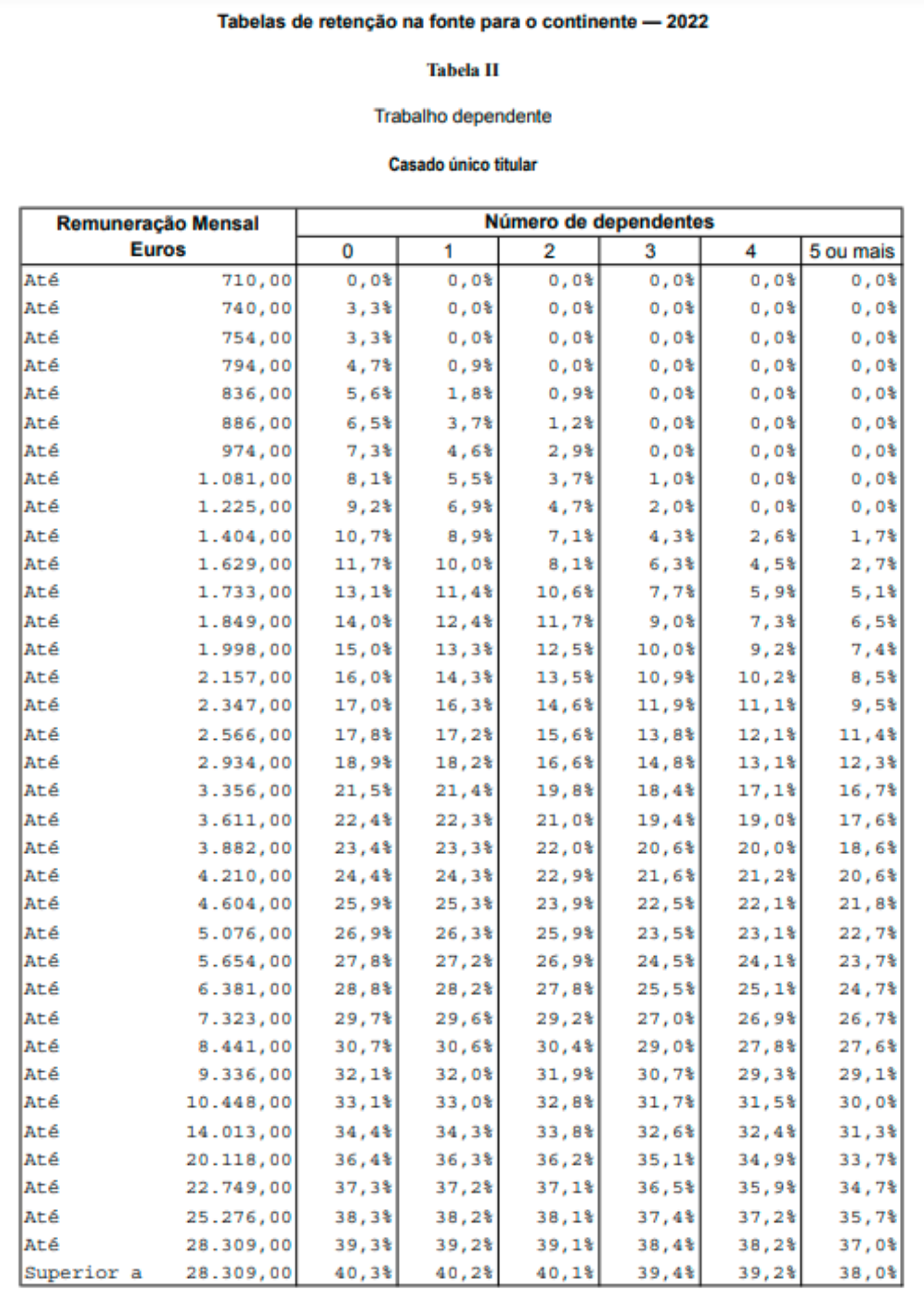 Pode consultar aqui o documento divulgado pelo Governo com as Tabelas de retenção de IRS 2022.
