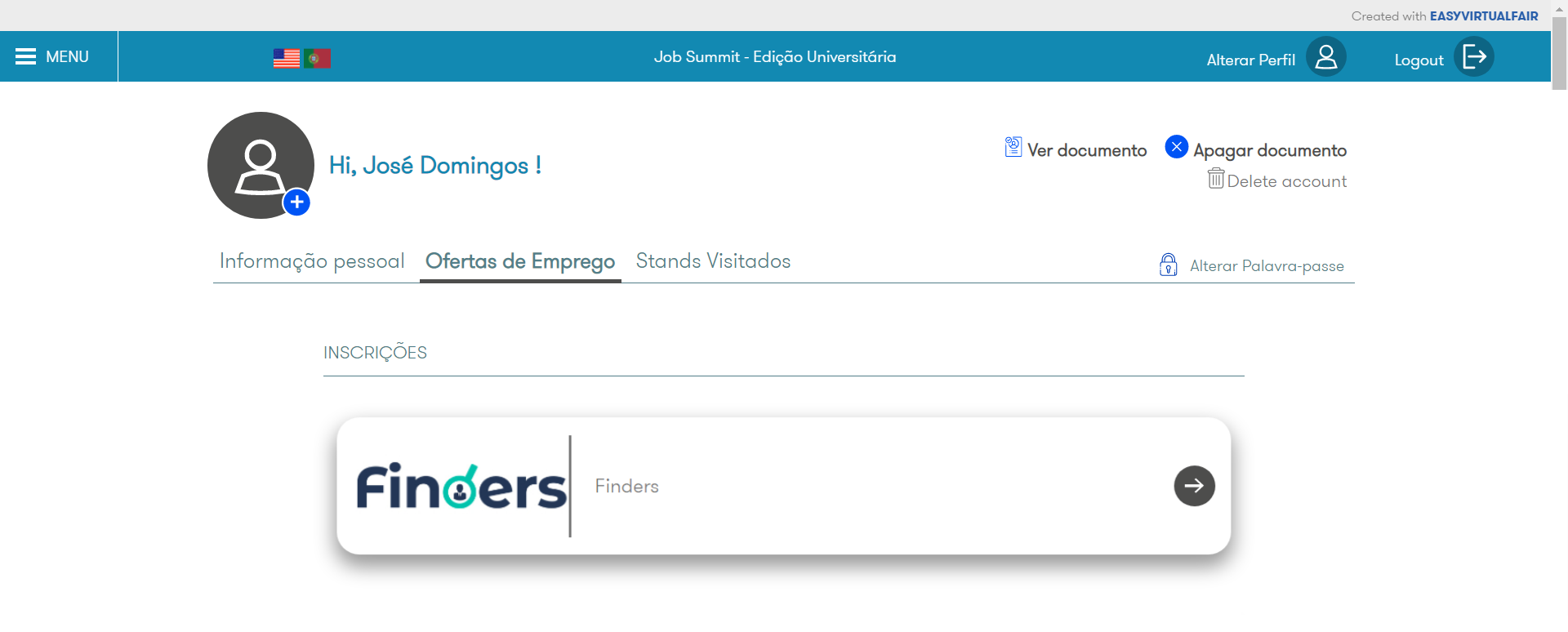 A qualquer momento durante o evento podes editar o teu perfil e currículo.